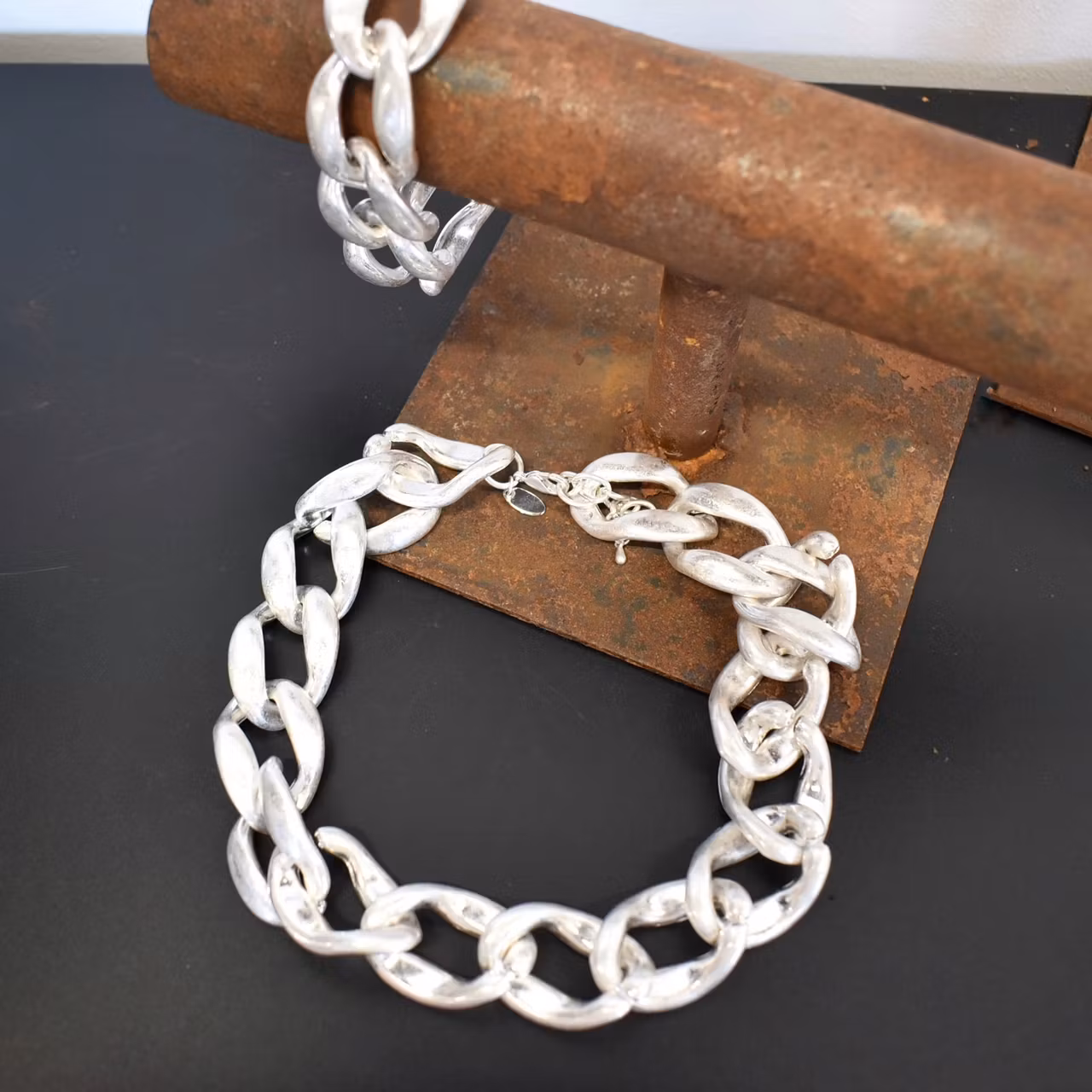 Det här är ett läckert kort kedje-halsband i lättviktsmetall. Halsbandet öppnas/stängs med hummerlås.