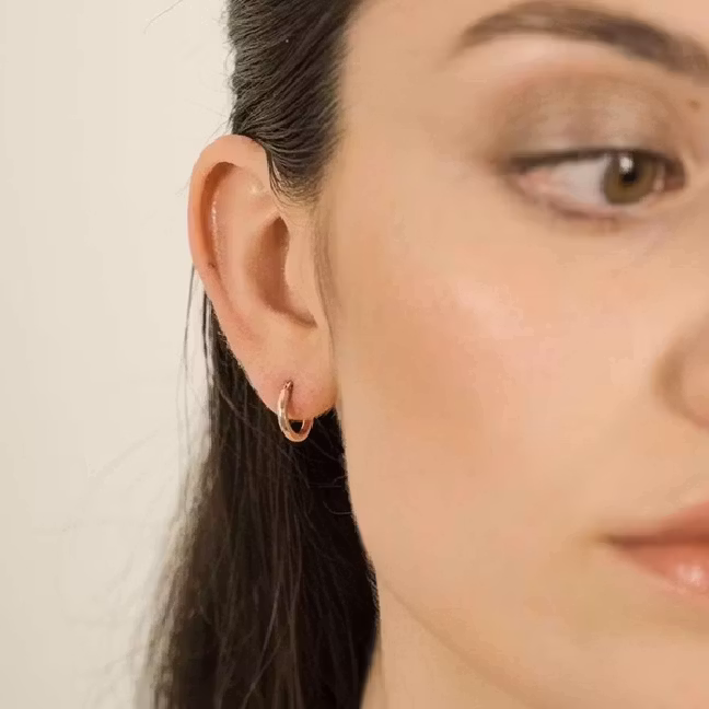 Det här är ett enkelt och stiligt örhänge i form av en liten ring. Knäpps enkelt på och av med stift. Veramés smycken är utformade för alla smaker och stilar, de kan bäras individuellt eller kombineras med varandra, och samtidigt slippa oroa sig för eventuell allergi.