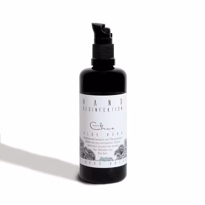Det här är en 70%-ig handdesinfektion med ekologisk och fuktgivande Aloe Vera-extrakt och ekologiskt vegetabiliskt glycerin. Produkten minskar risken att smittas av olika virus och bakterier men glöm inte att alltid tvätta händerna också då enbart handsprit inte är tillräckligt skydd. En citrusblandning av eko eteriska oljor bidrar till att händerna får en fräsch doft efter att produkten gått in i huden.