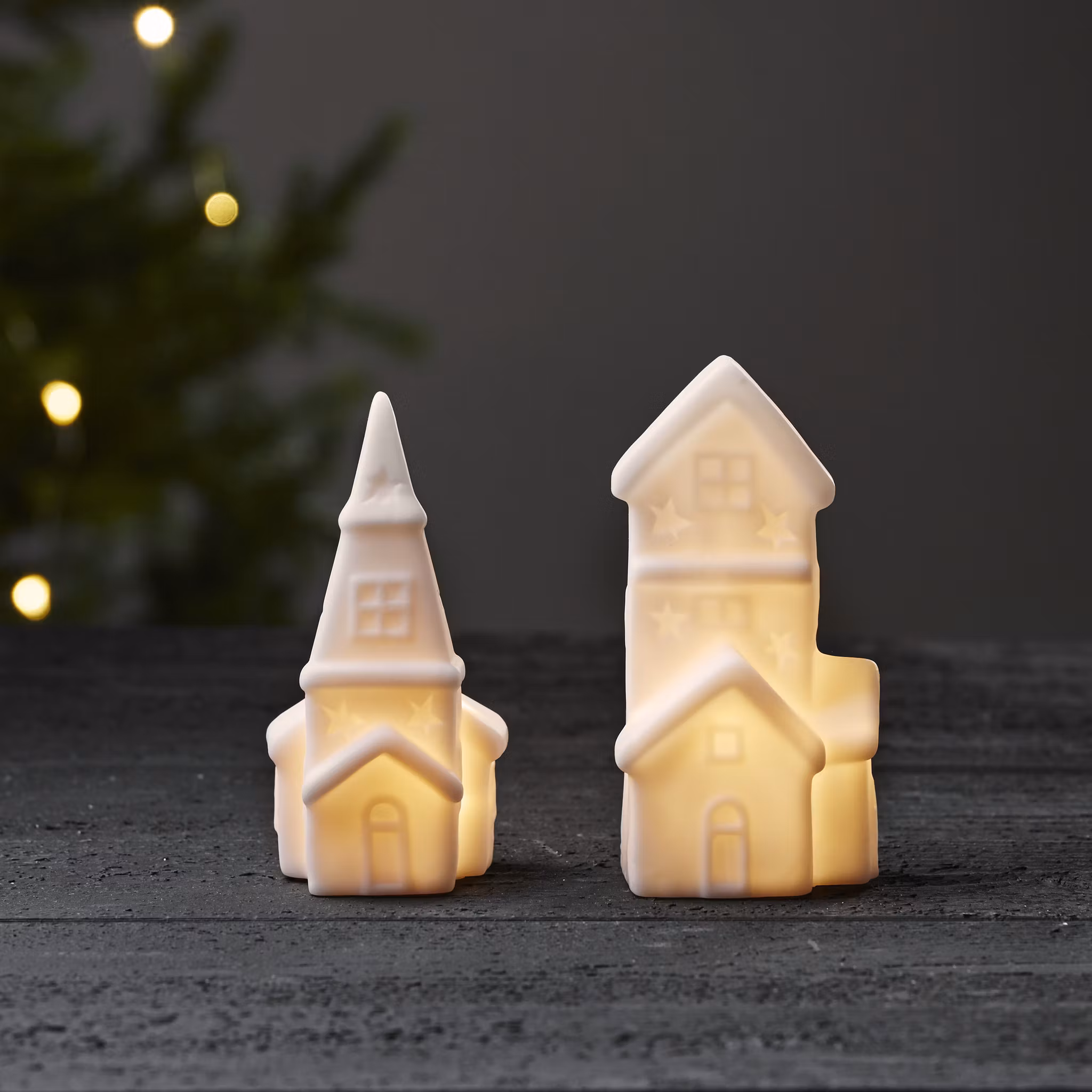Bordsdekoration Hus/Kyrka Set om 2 VIT - Star Trading