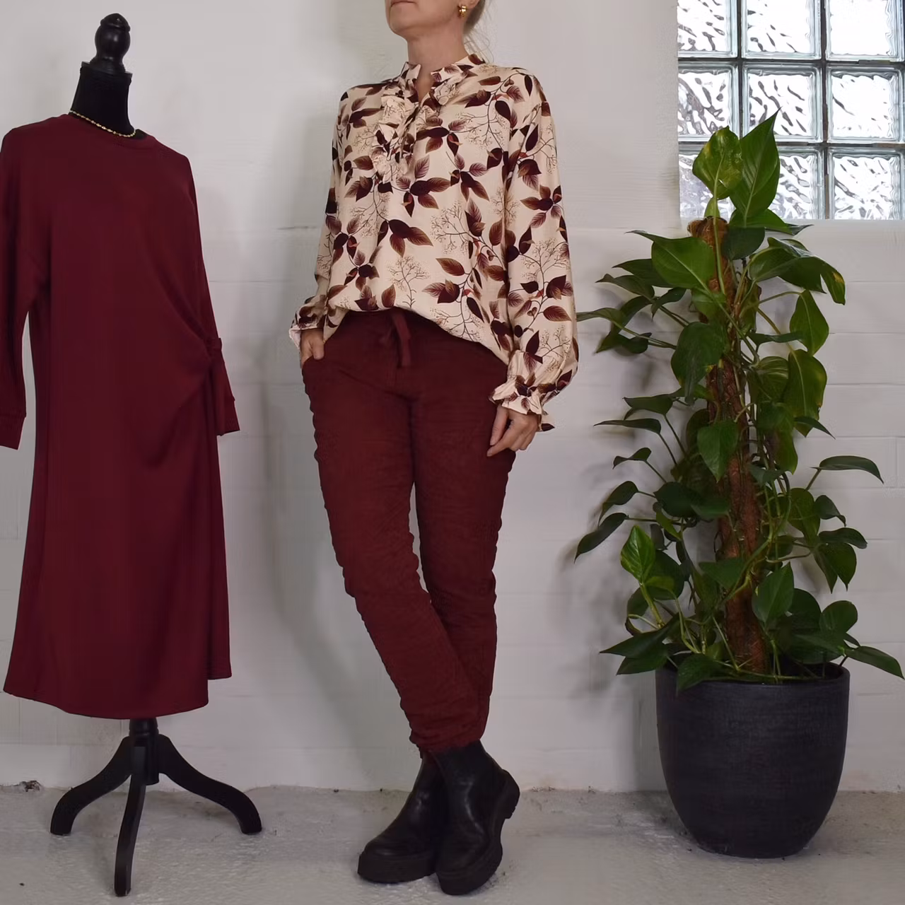 Bra att veta: OBS! Andrasortering! Blusens krage är snedsydd och det skiljer mellan höger och vänster sida (se detaljbild). Materialet innehåller inte stretch. Viskos kan krympa vid tvätt.