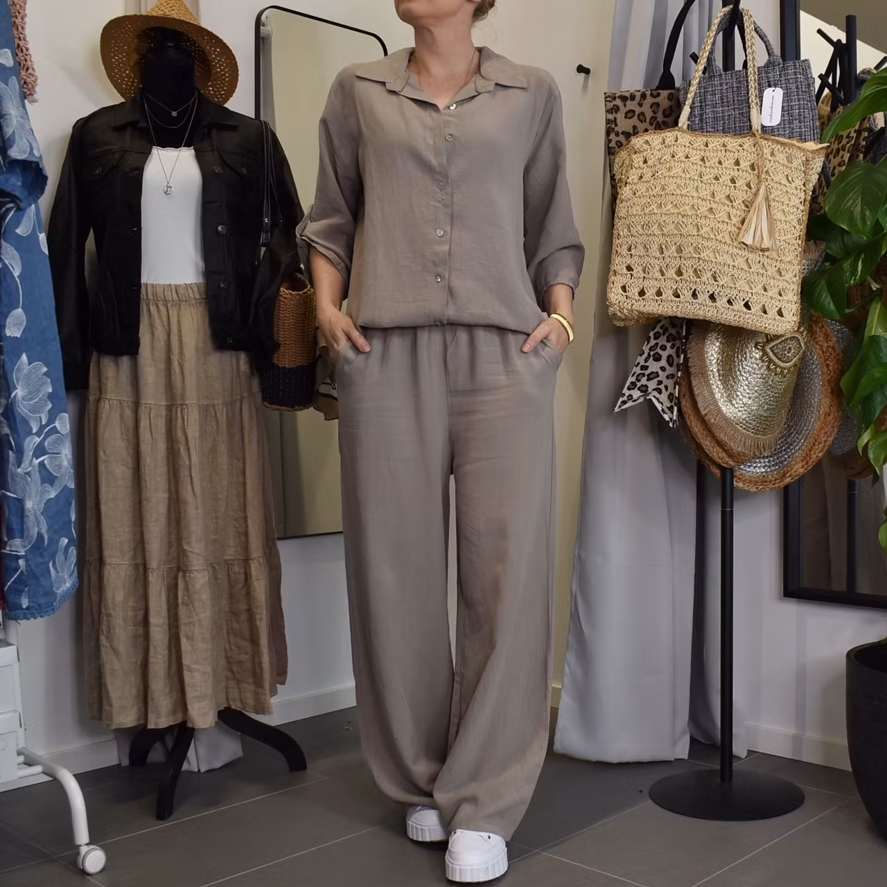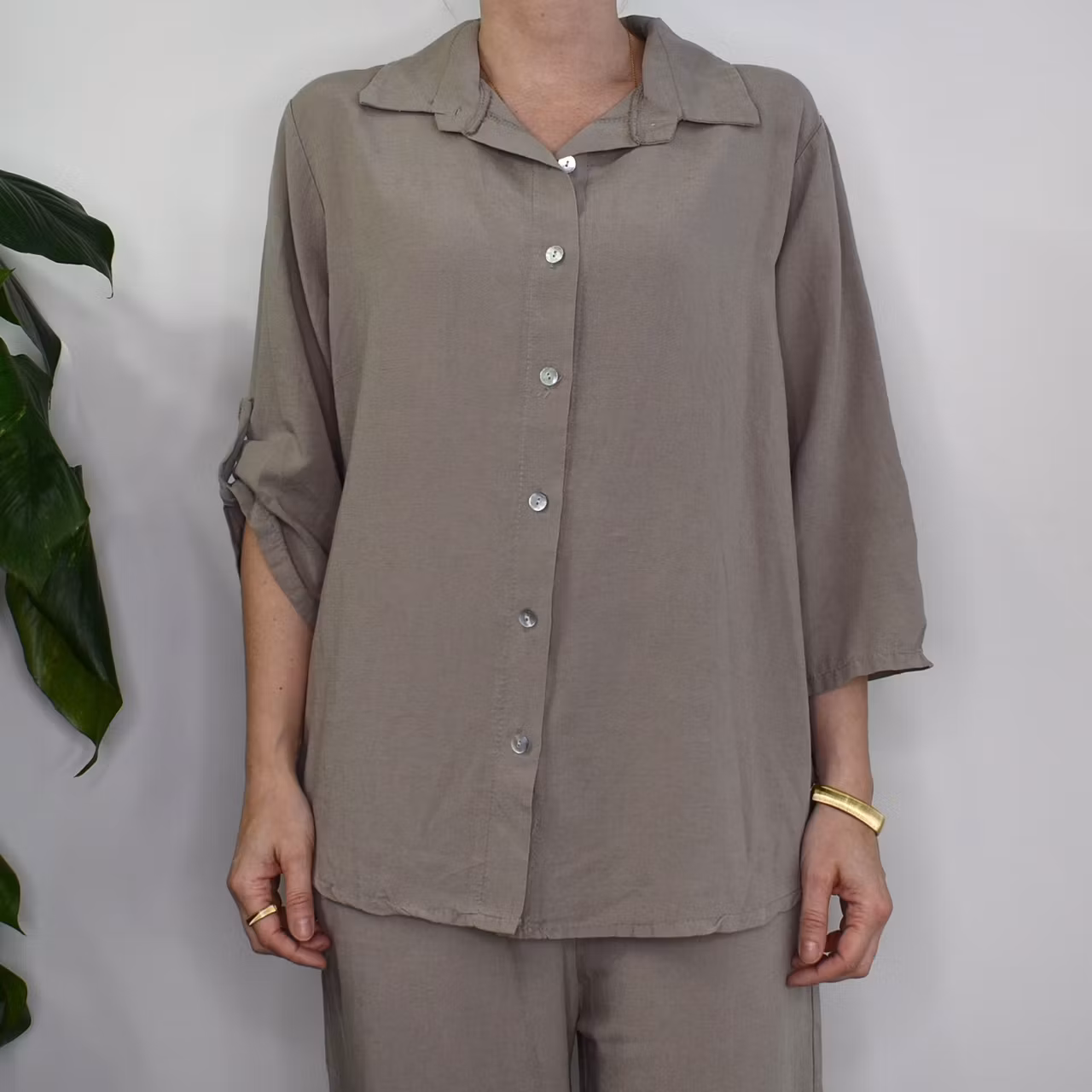 Skjorta Tone linnemix TAUPE - Mix By Heart