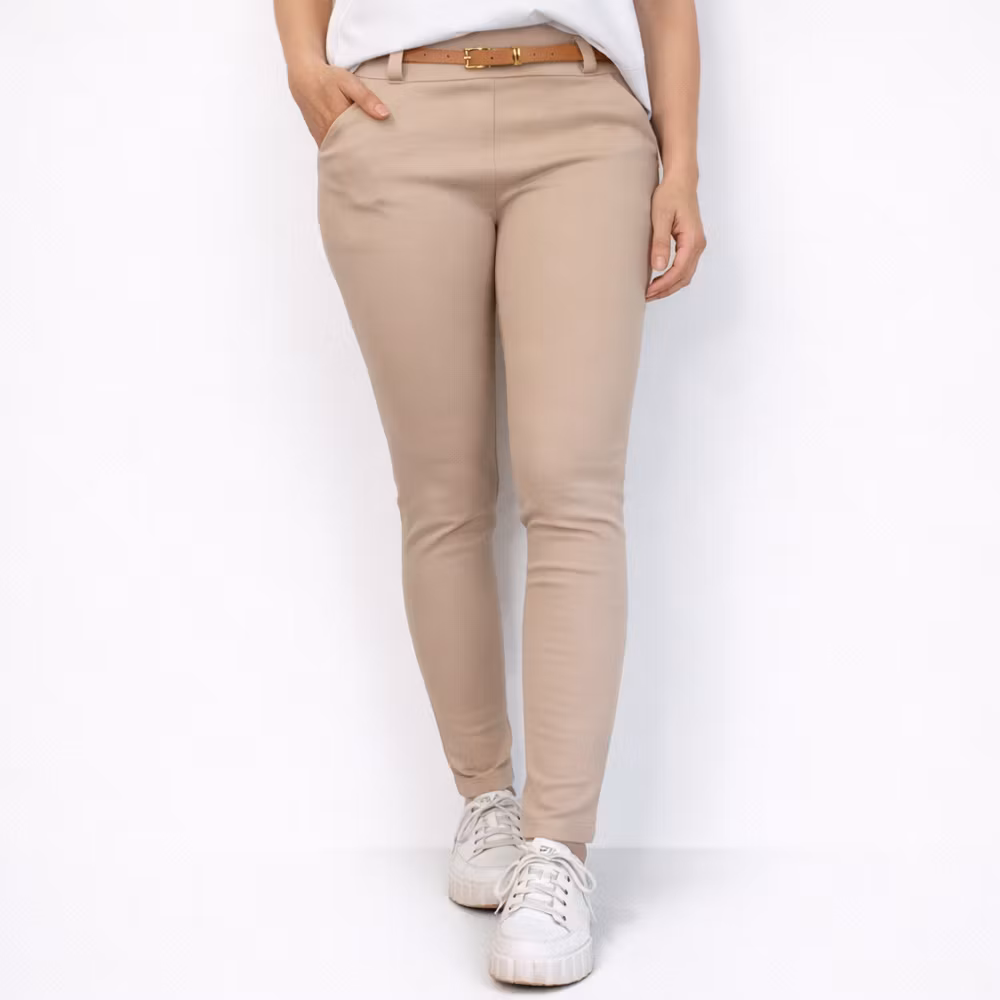 Bra att veta: Midjan är mellanhög. Tyget är tillräckligt tjockt för att kännas mer som ett par byxor.