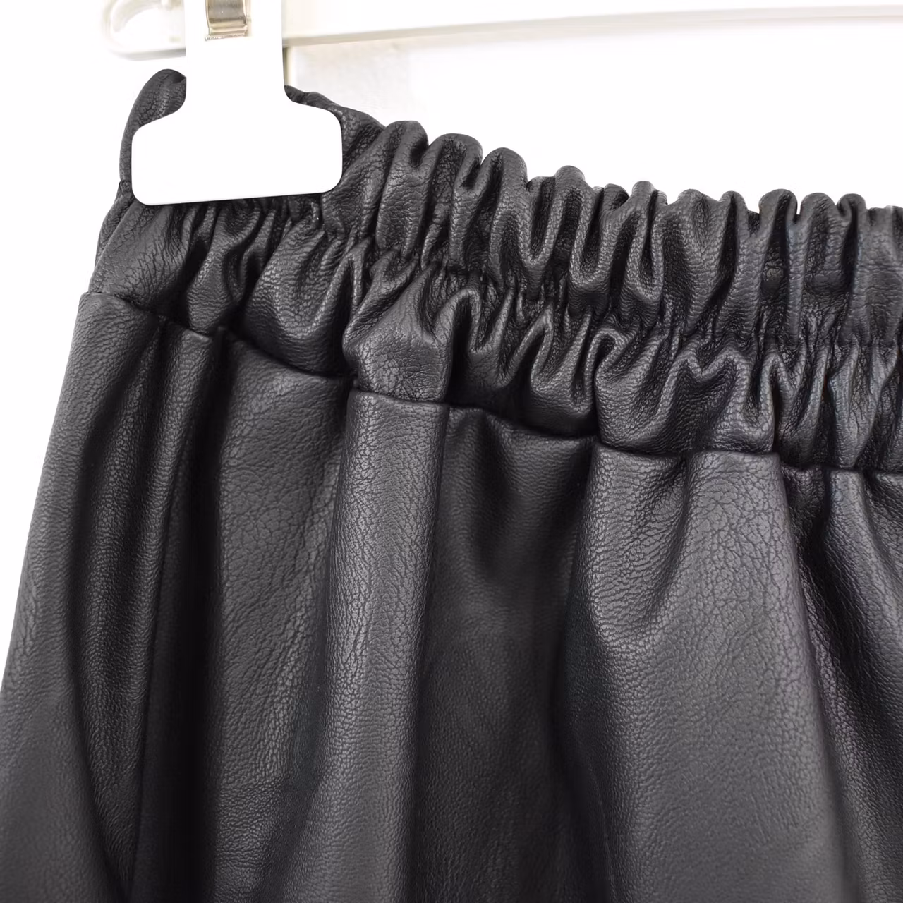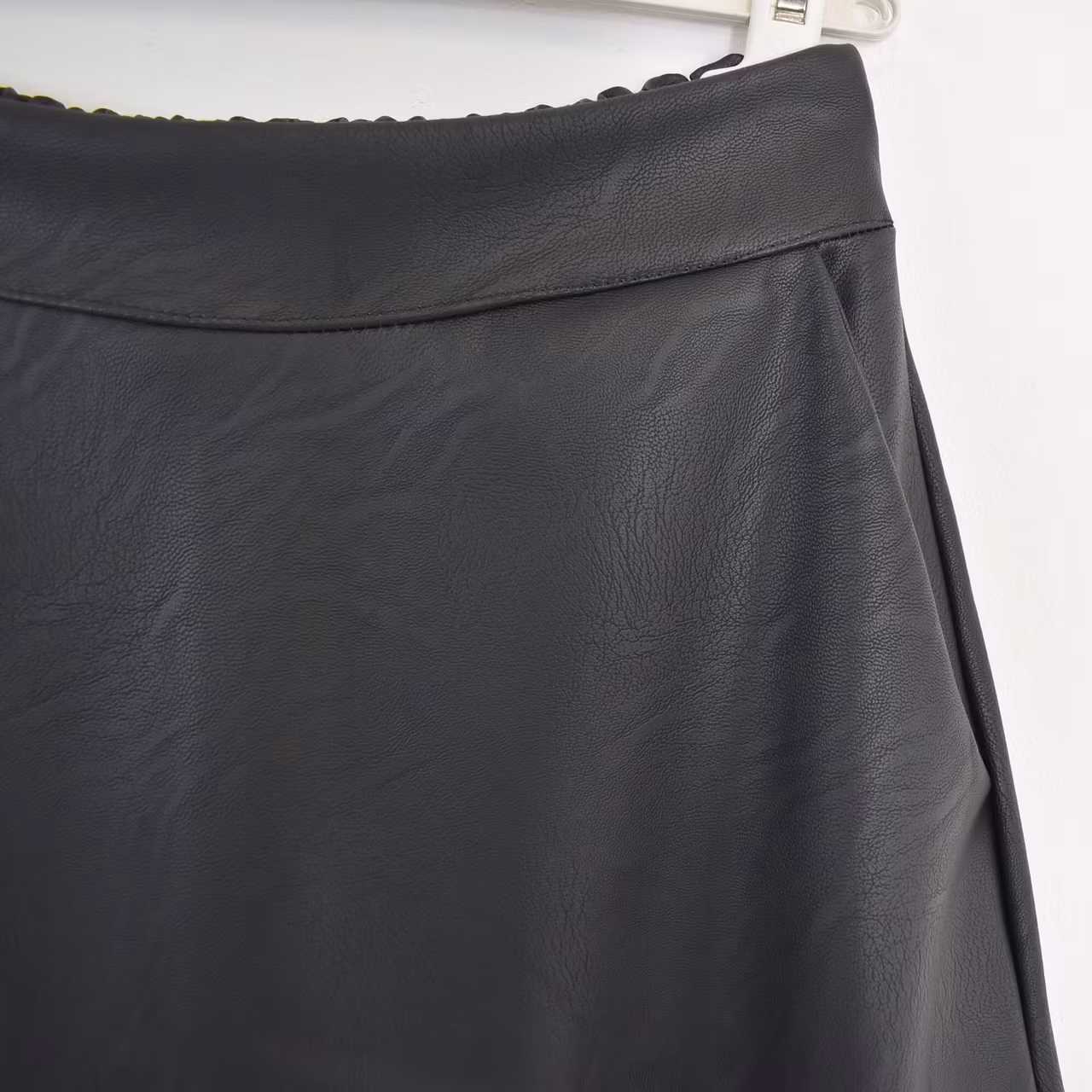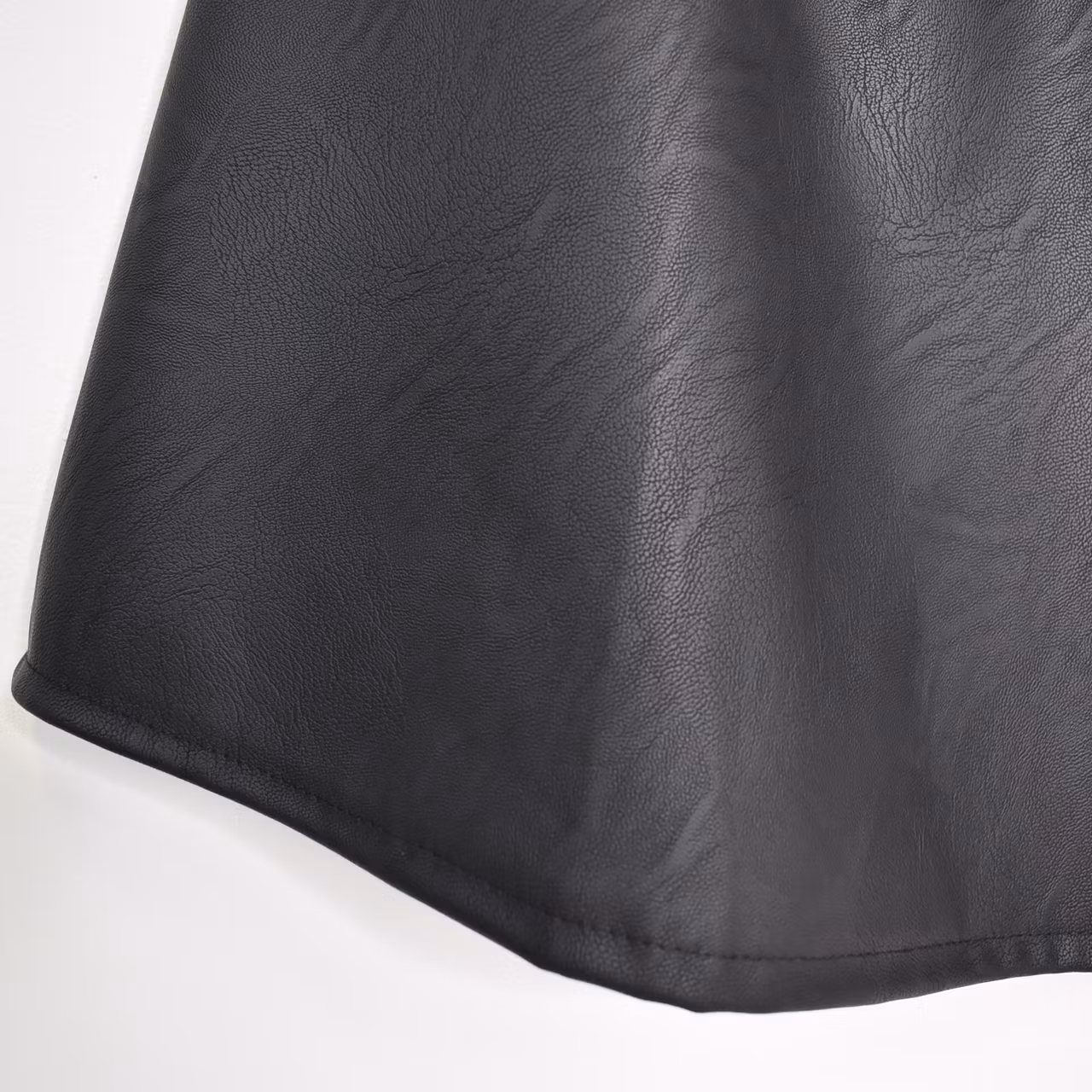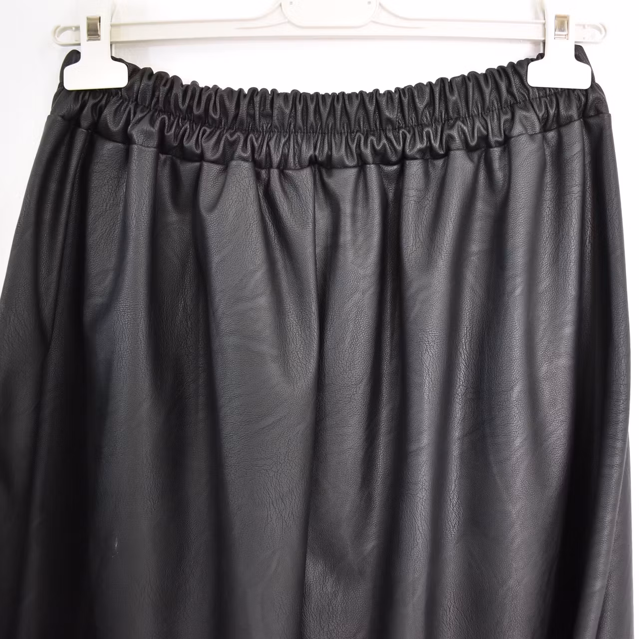 Det här är en läcker lång kjol i halvmatt konstskinn med svagt mönster (se detaljbilderna). Kjolen är klockformad och har sneda fickor fram. Baktill i midjan är där stretchig resår med rynkat tyg under. One Size - passar uppskattningsvis upp till L (40). Modellen har en midjevidd på cirka 78cm och är 163cm lång.