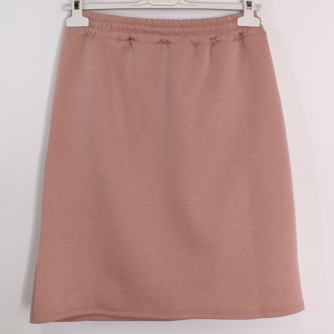 Det här är en fin kort kjol i mjukt och stretchigt material. Kjolen har en stretchig resår samt knytband i midjan. I sidorna är där sneda fickor.