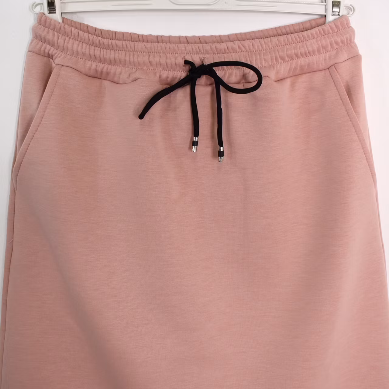 Bra att veta: Elastisk resår och knytband i midjan. Stretchigt och mjukt tyg. Sneda fickor.