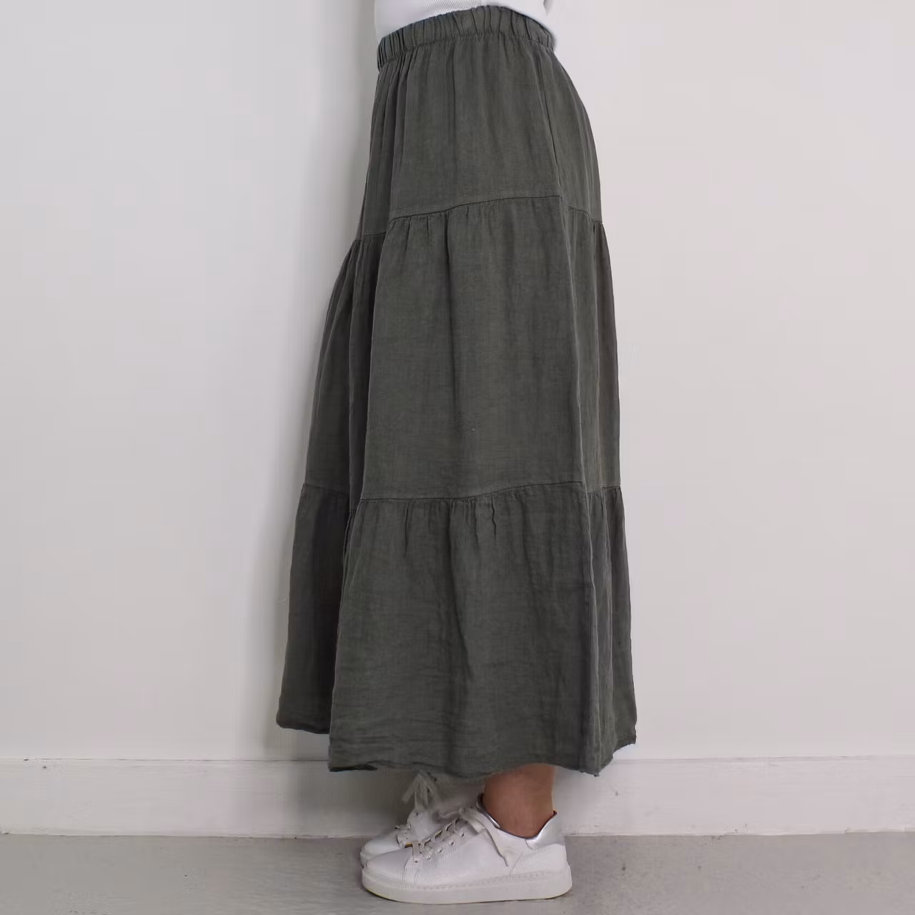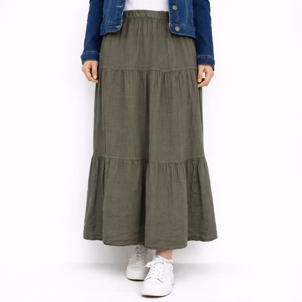 Linnekjol med volanger KAKI