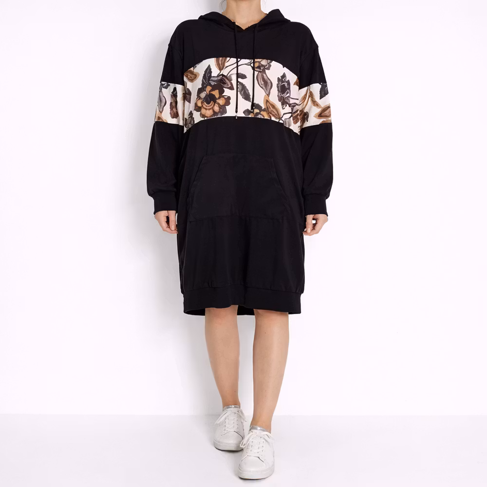 Hoodieklänning Velour Emily Blommig SVART - Camicia