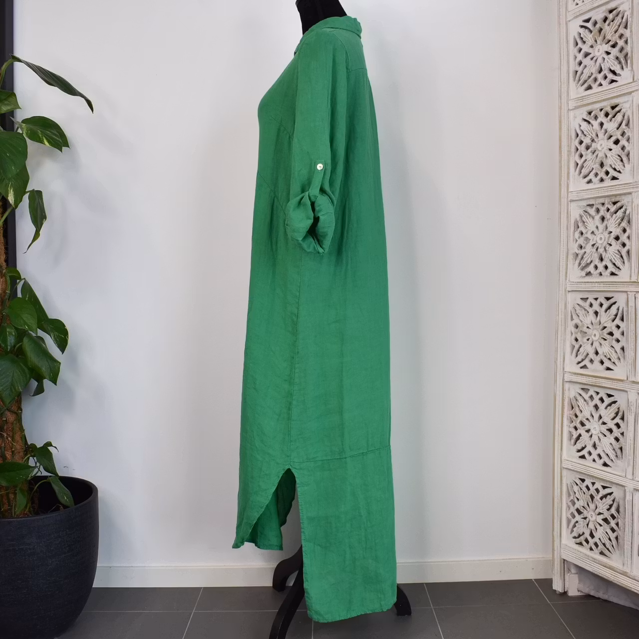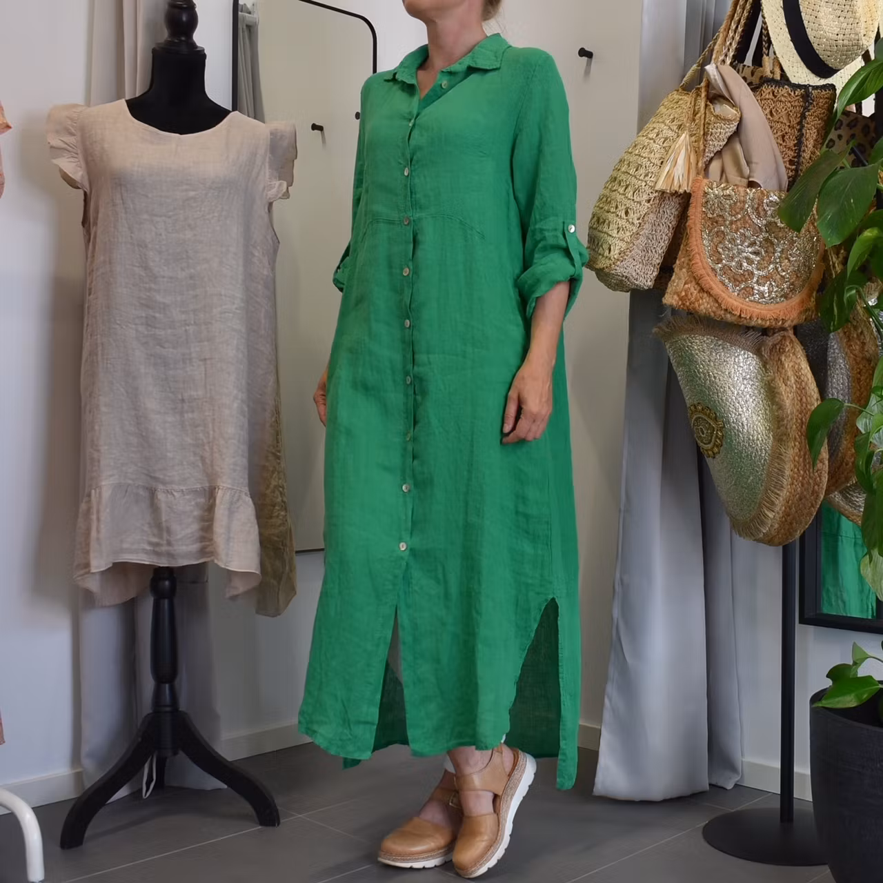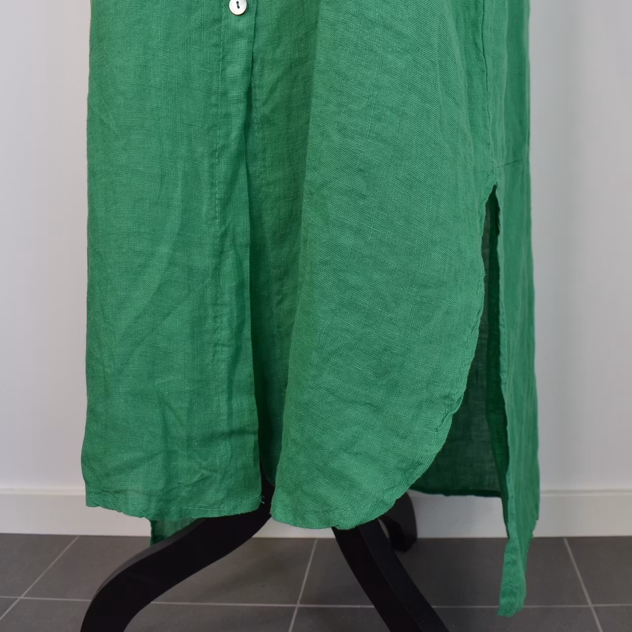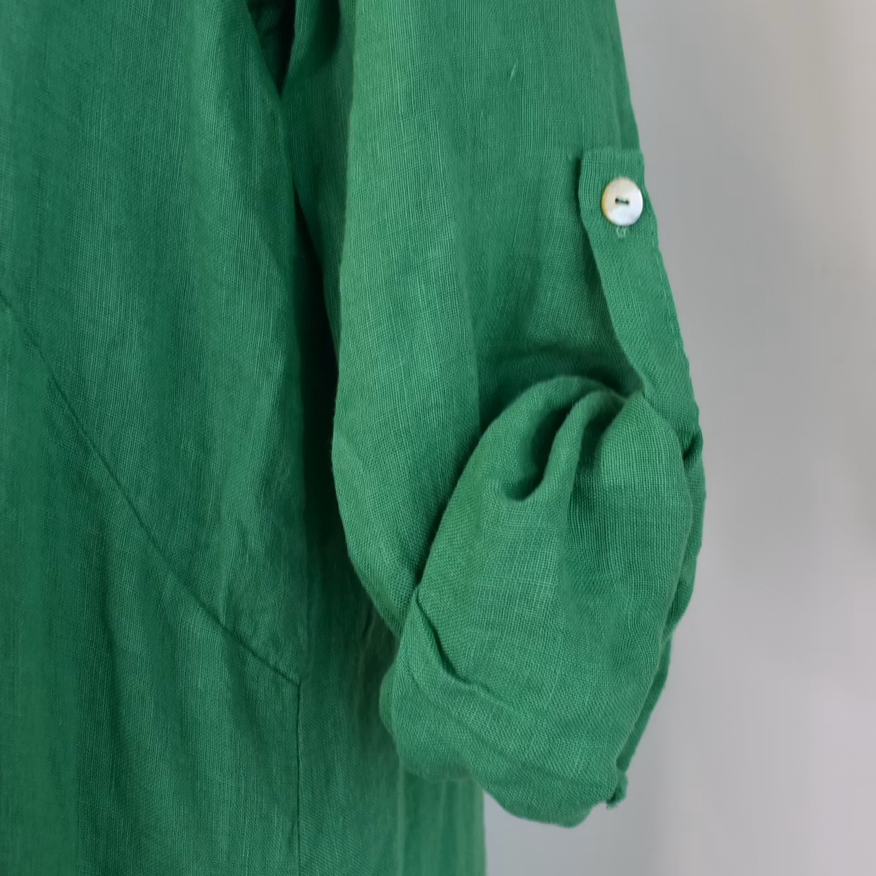Lång skjortklänning i linne GRÖN
