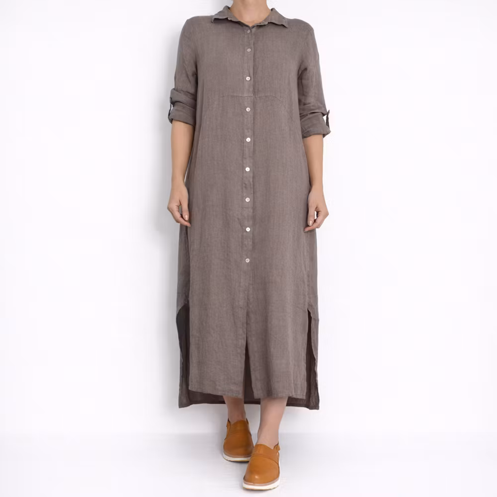 Skjortklänning i linne TAUPE