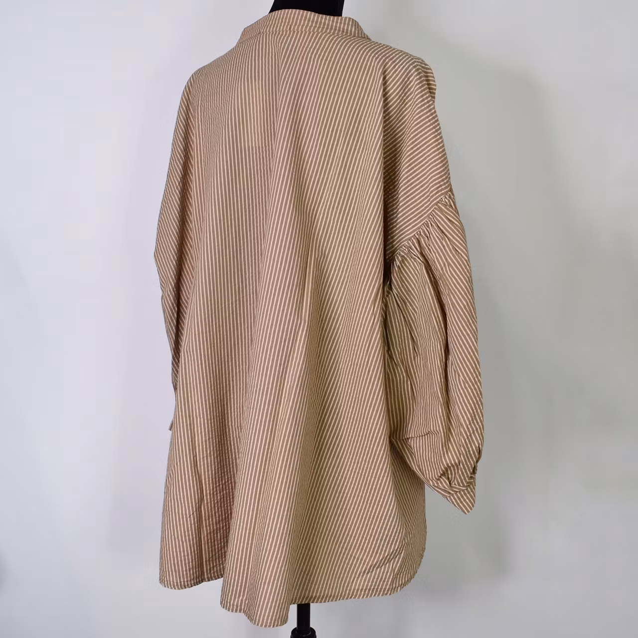 Storskjorta Randig MÖRKBEIGE - Nowomanslabel