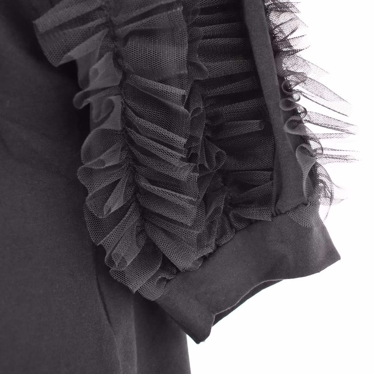 Bra att veta: Mjukt och stretchigt tyg. Tyll-volanger på de korta ärmarna.