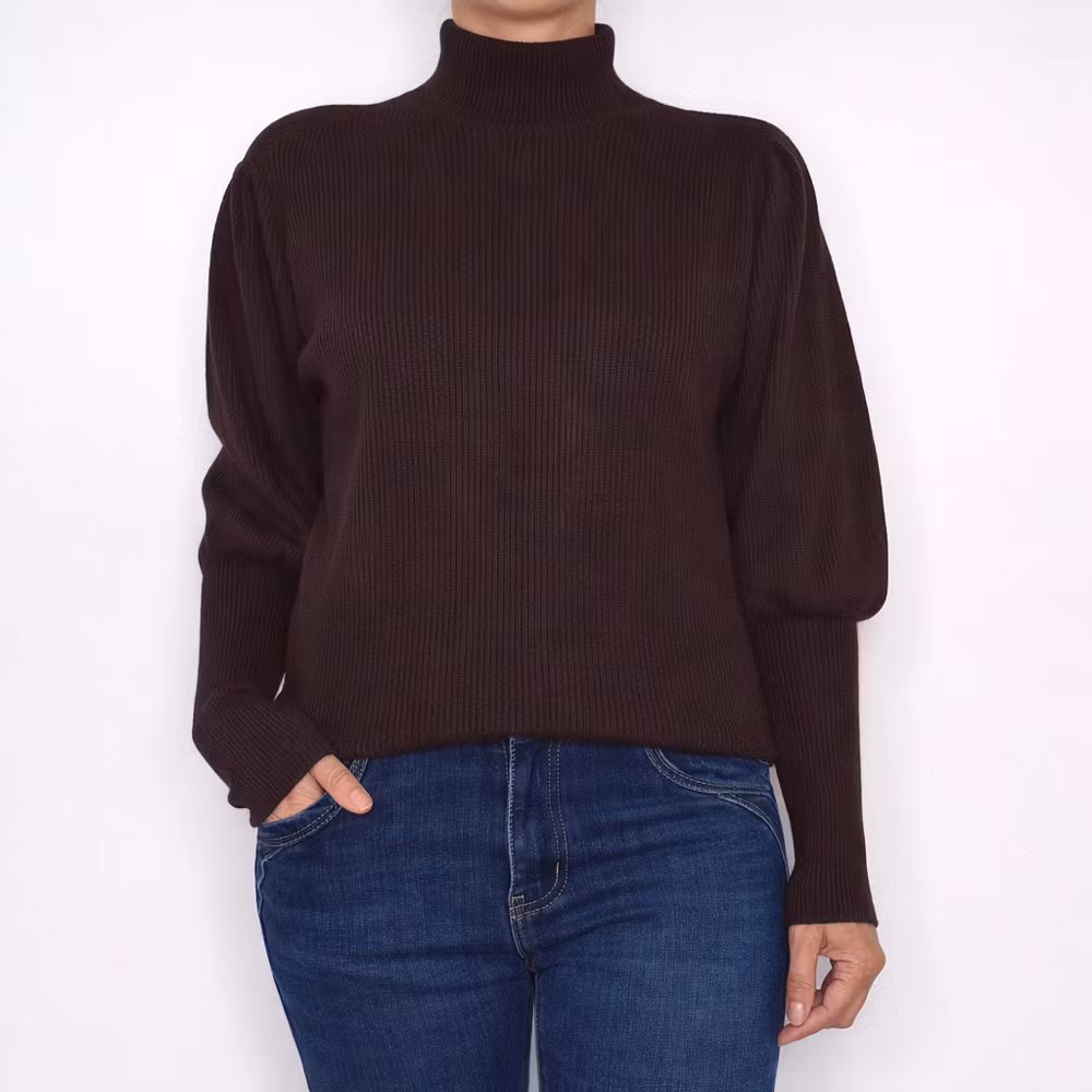 Stickad Polotröja Med Puffärm CHOCOLAT