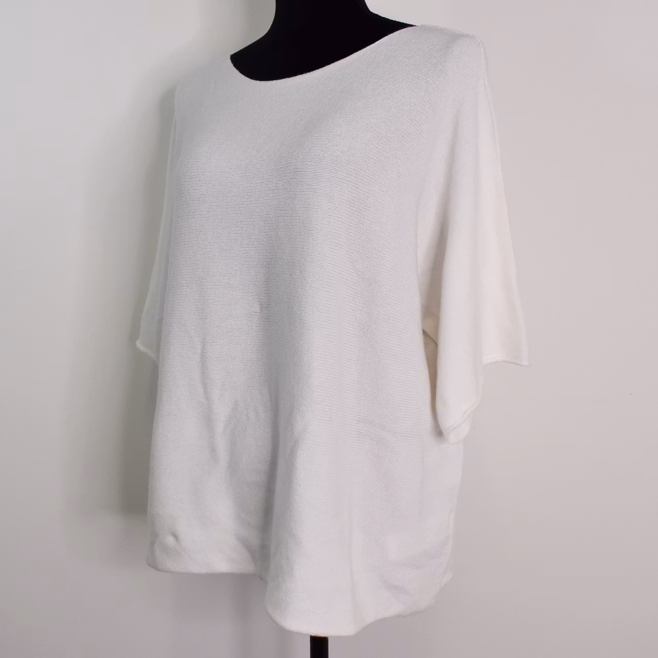 Bra att veta: Obs! Andrasortering! Det finns en svag mörk fläck vid armvecket baktill på vänster sida (se detaljbilder. Fläcken är cirka 5x5mm och går eventuellt bort vid tvätt, men det är osäkert. Materialet är mjukt och följsamt. Avslappnad passform.