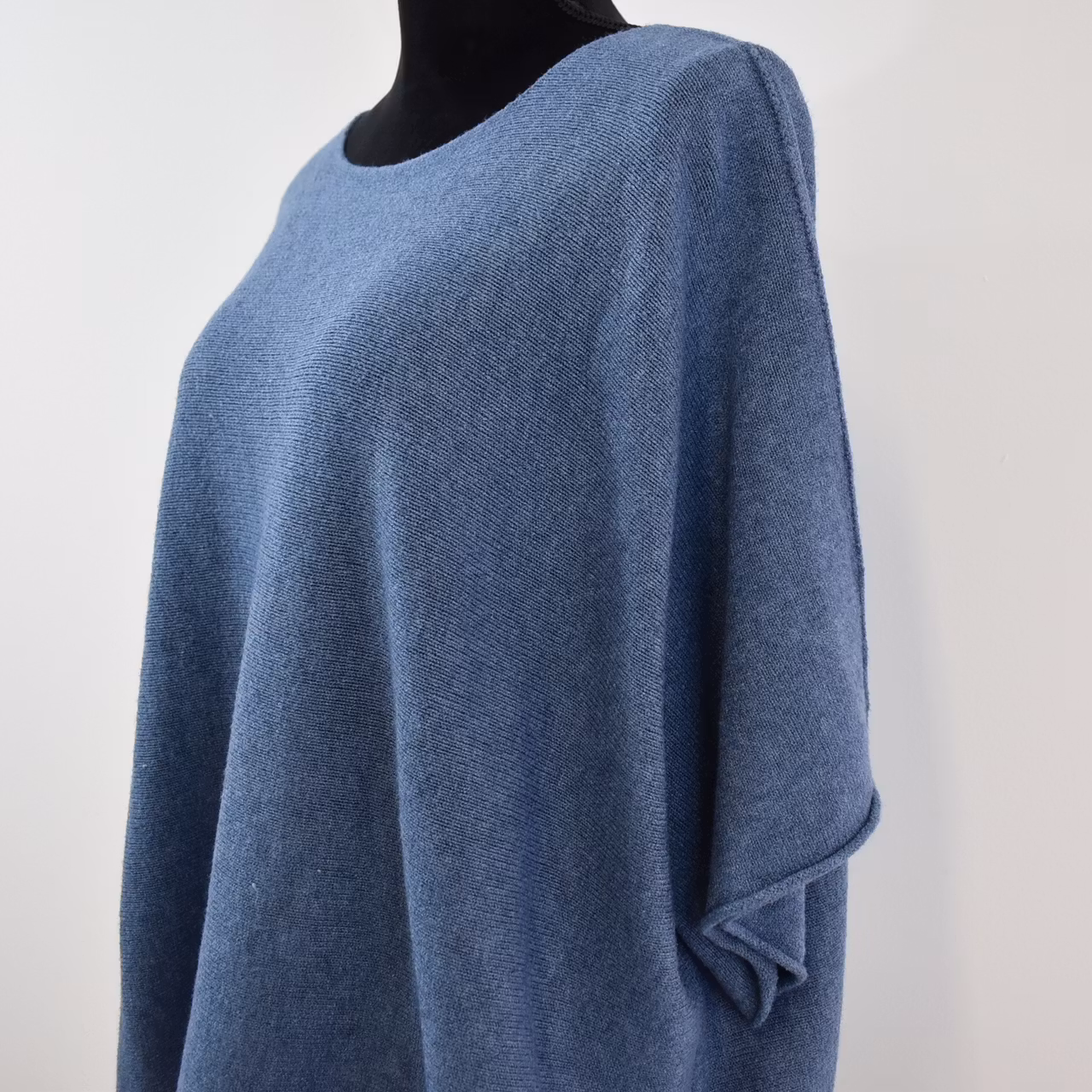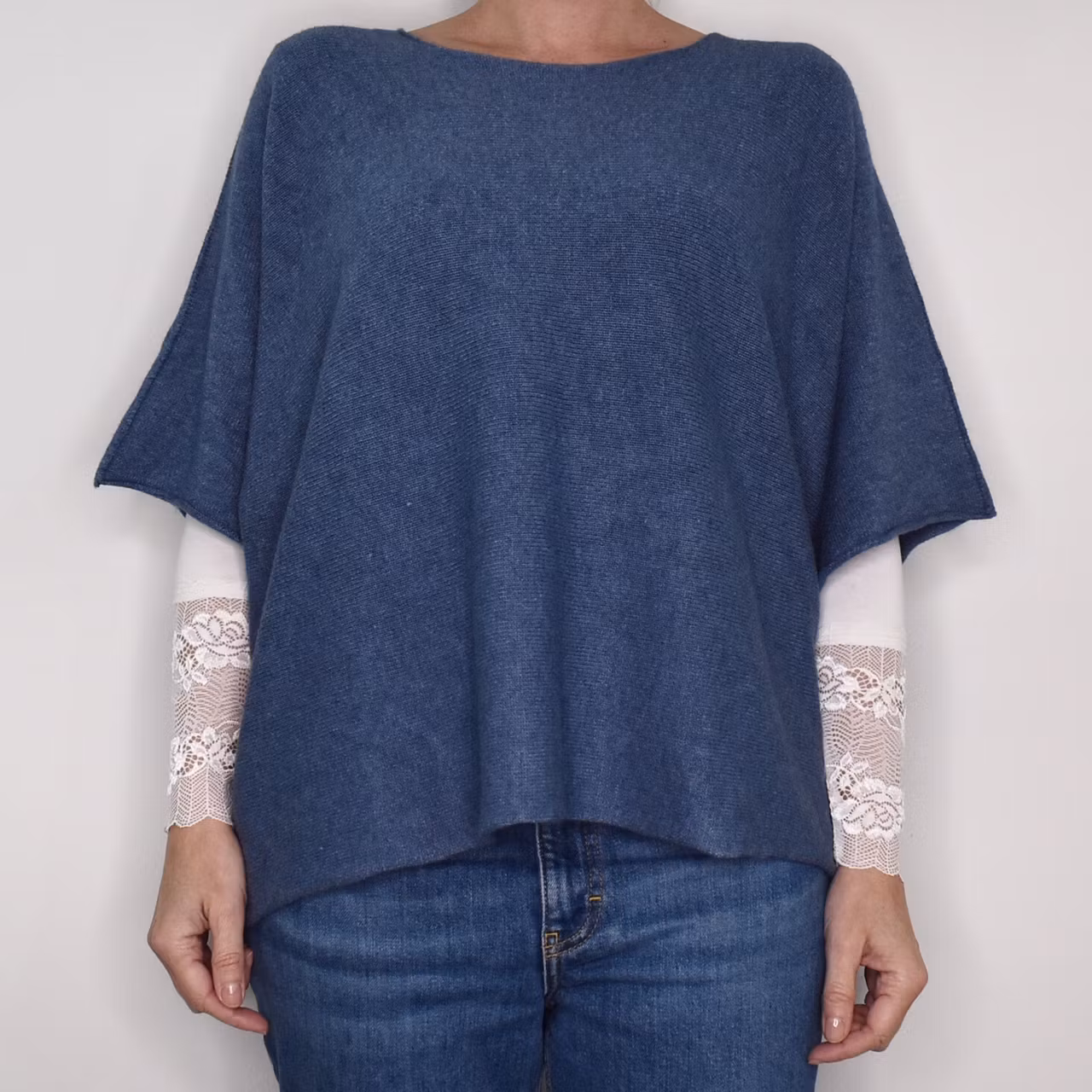 Finstickad Ponchotröja Nessa JEANSBLÅ - Mix By Heart