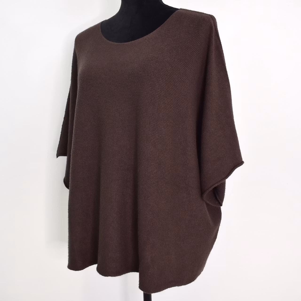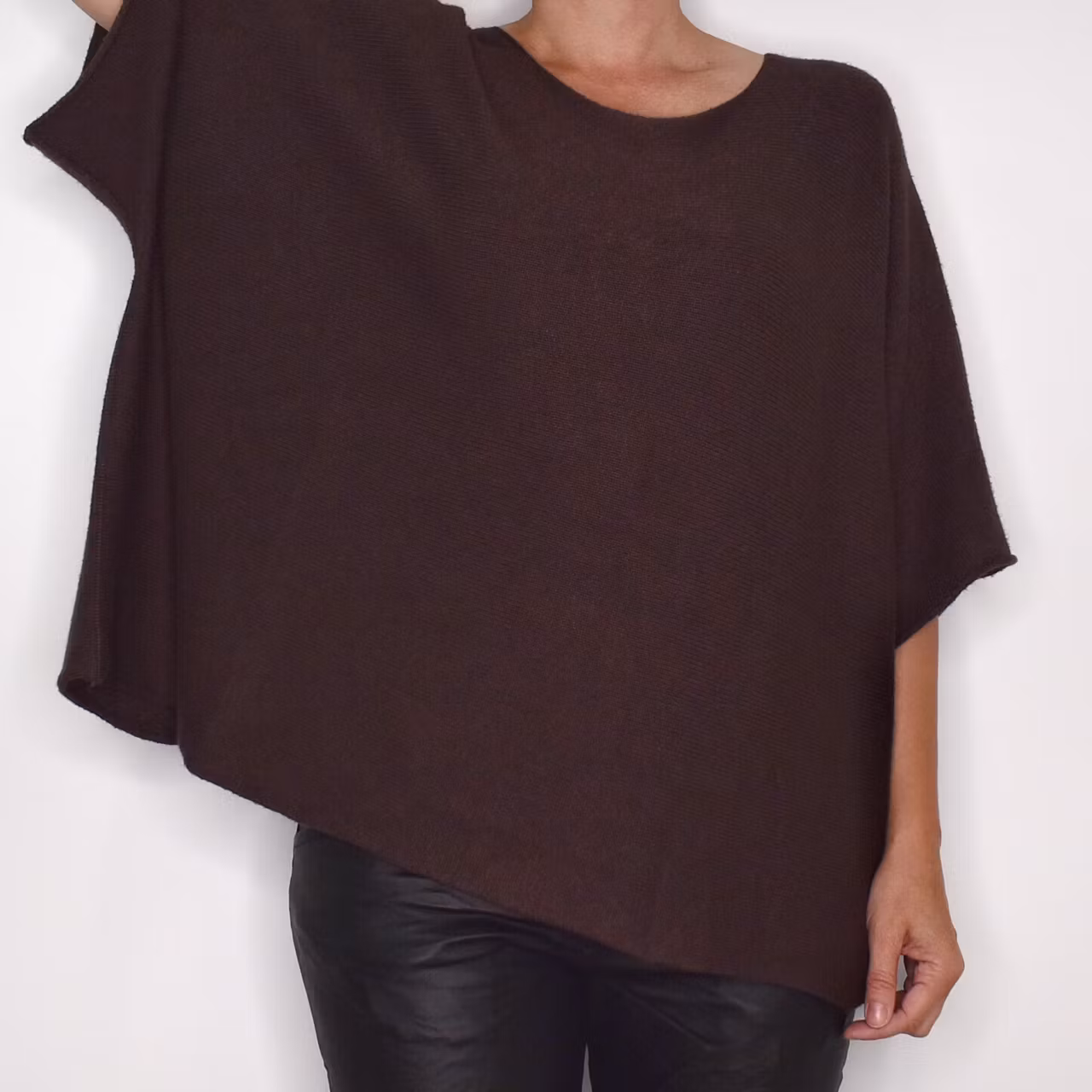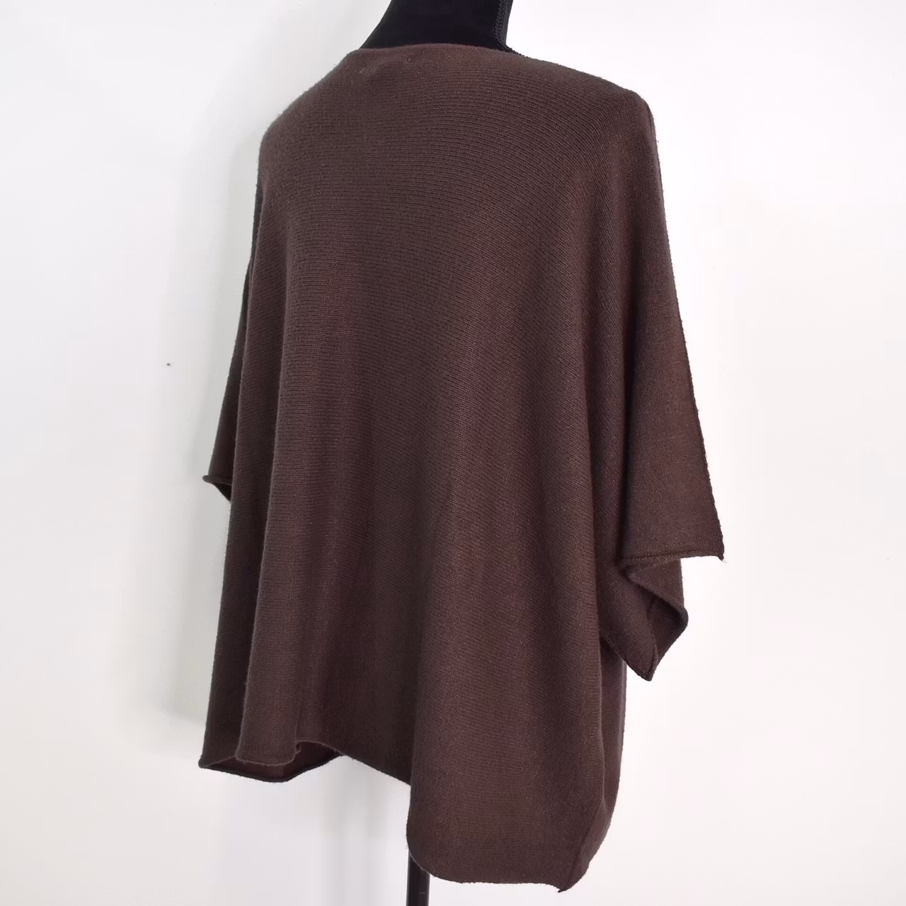 Finstickad Ponchotröja Nessa MÖRKBRUN - Mix By Heart
