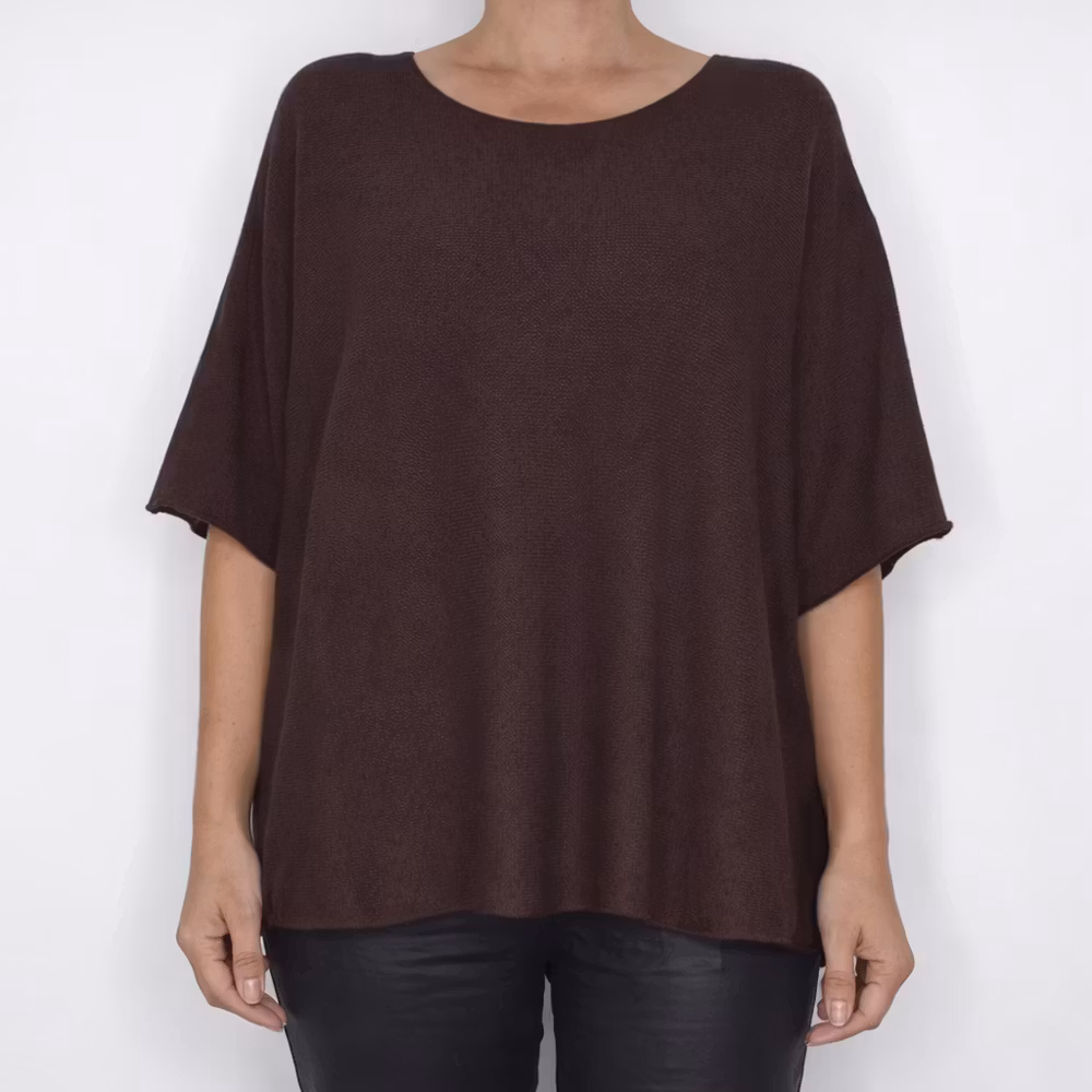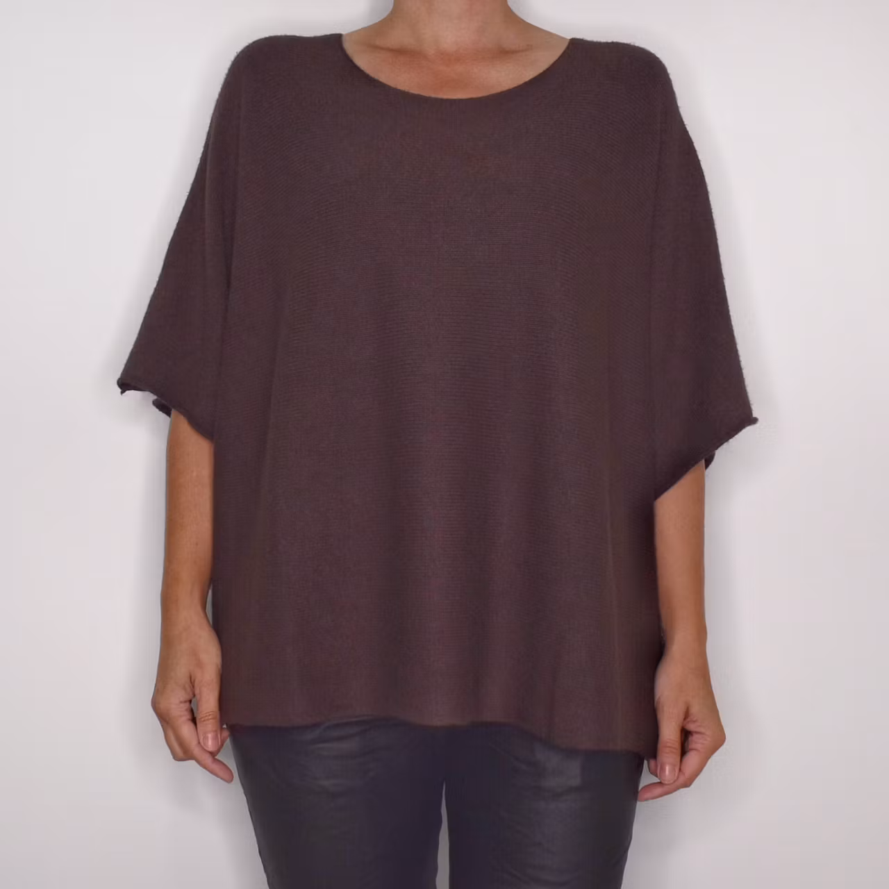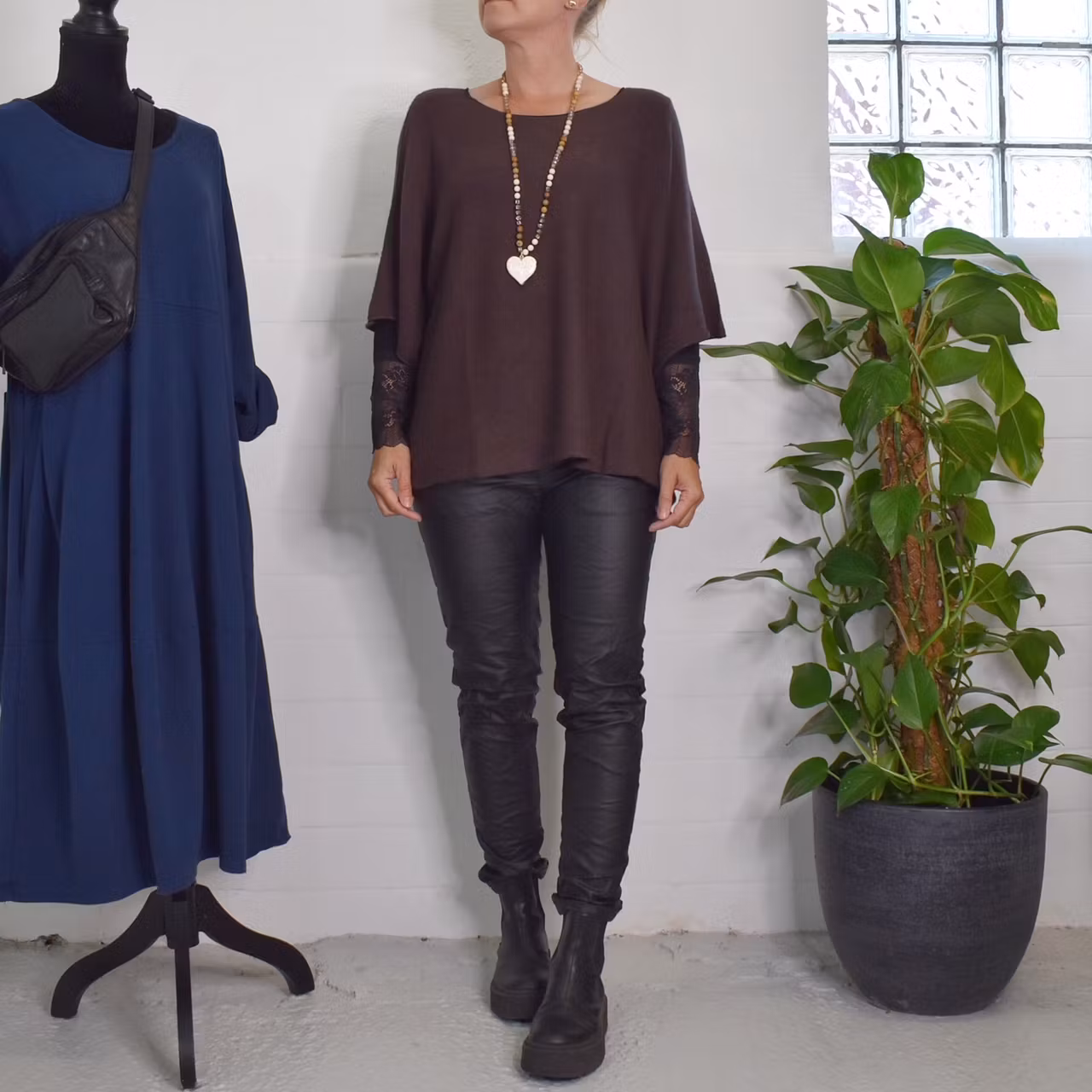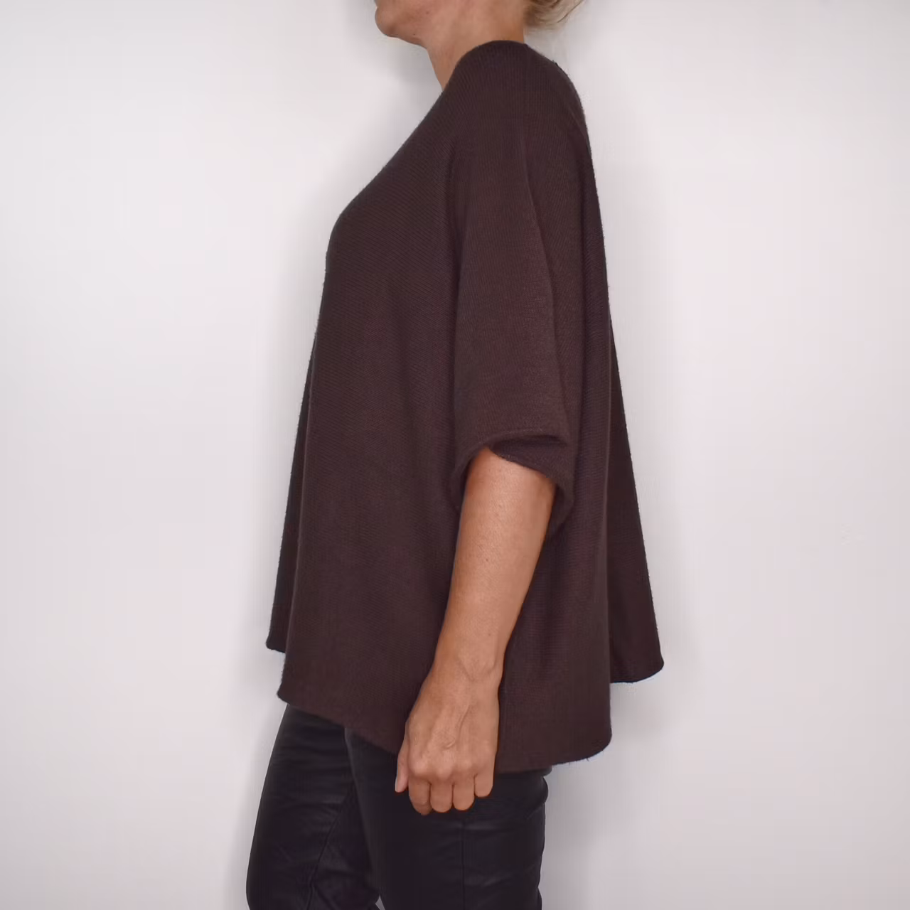 Finstickad Ponchotröja Nessa MÖRKBRUN - Mix By Heart