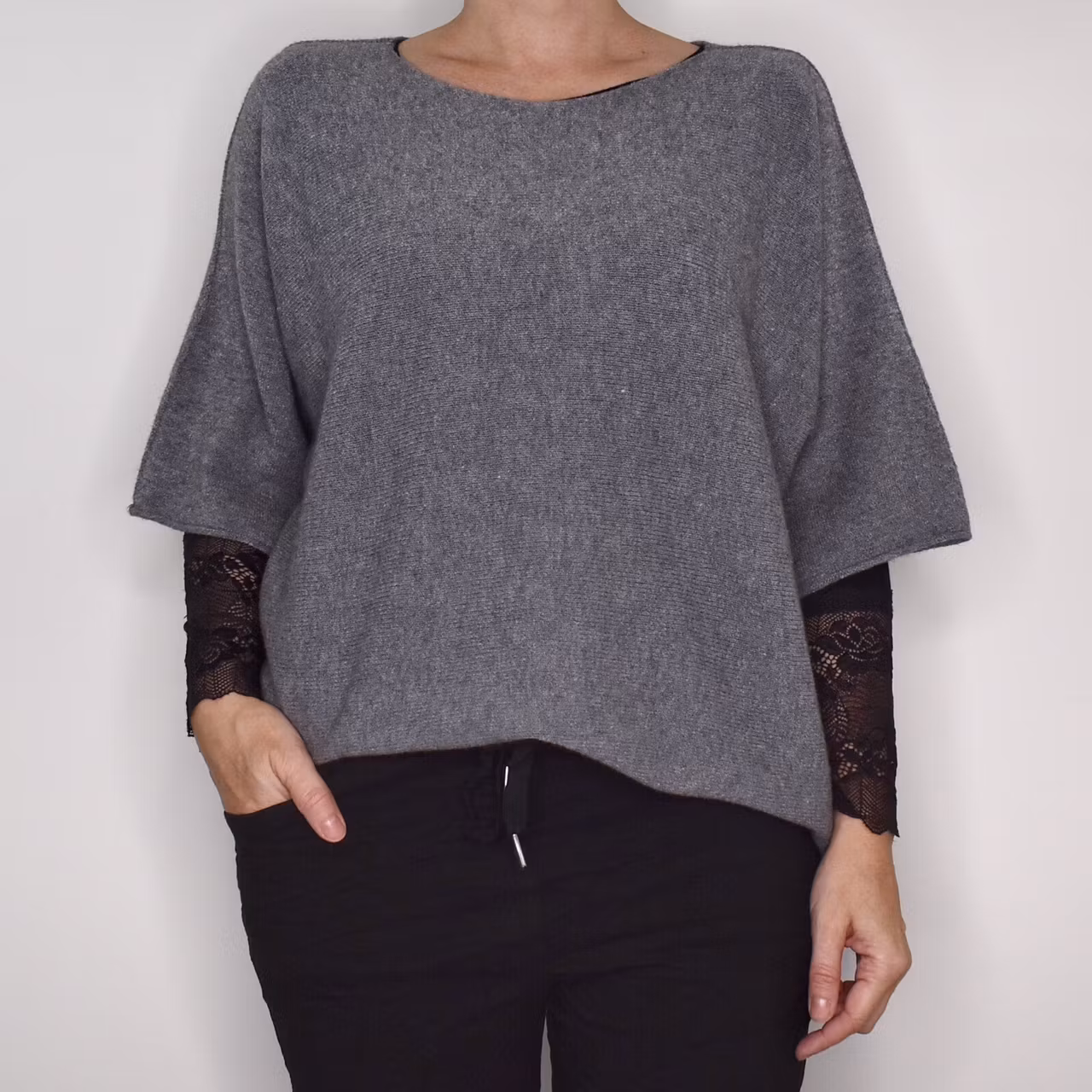 Finstickad Ponchotröja Sia MEDIUM GRÅ - Marta du Chateau
