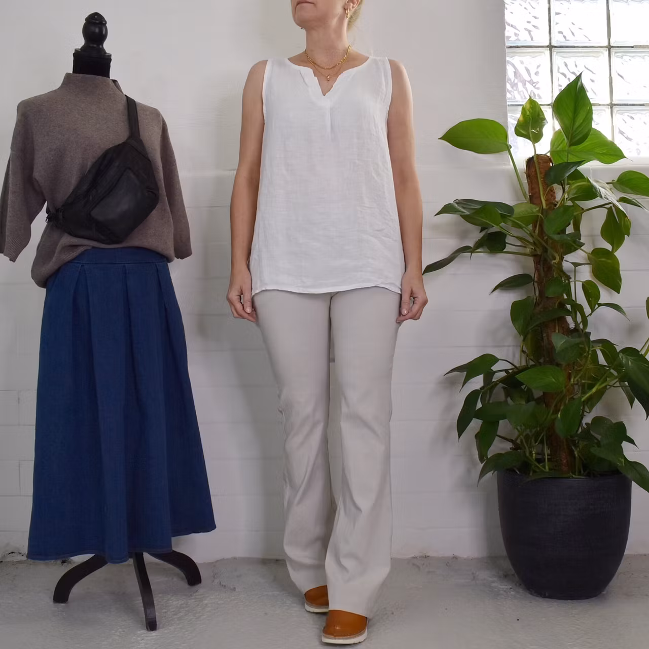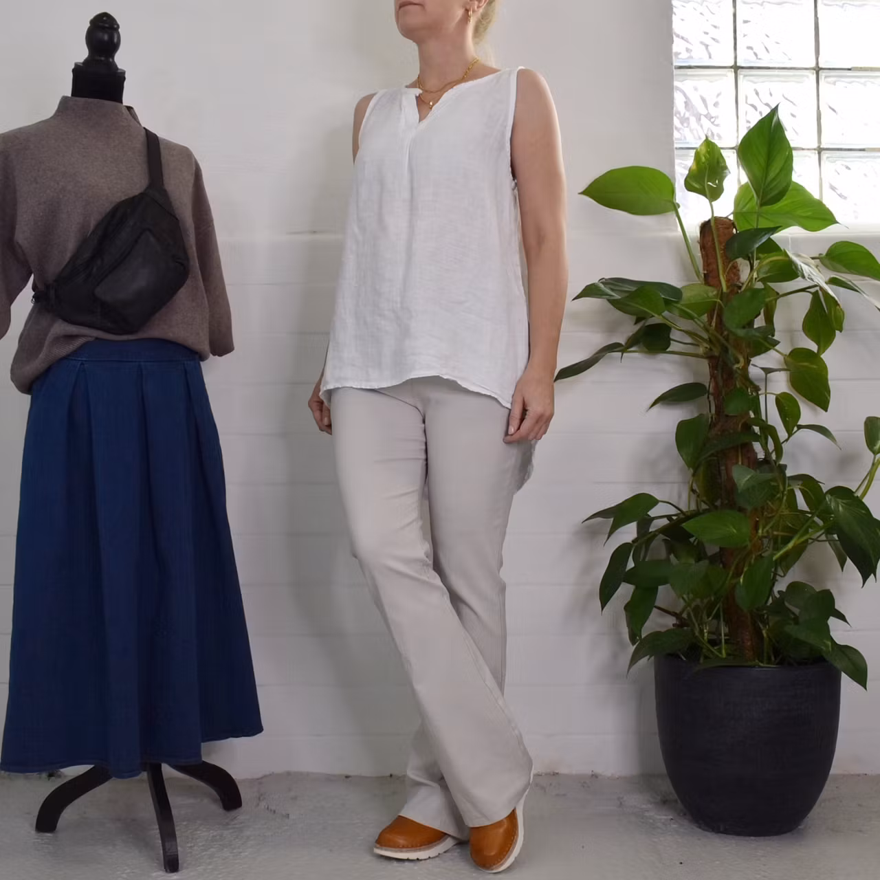 Linne/Ärmlös topp VIT